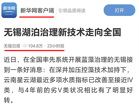 目前已在“三大湖”(太湖、巢湖、滇池)以及多個具有重要影響、大型湖庫上成功進行大規(guī)模、工廠化、無害化應急處置與防控。